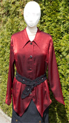 Elegante Zipfelbluse in schimmerndem, erdigen Rot, das leicht mit schwarz changiert. Bequem und locker fallend, mit oder ohne Gürtel zu tragen - zu schwarzer Hose oder schmalem schwarzem Rock.