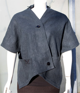Material: Wollstoff (anthrazit), Hanfstoff (grün), 6 Silberknöpfe (2 als Reserve)