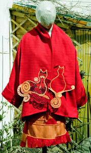 Einsatz für das Vorderteil eines Kleides mit Dirndlschnitt.